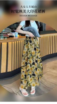 Plus-size vintage-style chic floral pants for 2025: High-waisted, fashion-forward, slimming, and age-defying skirt-pants perfect for summer.