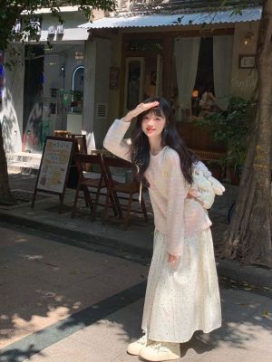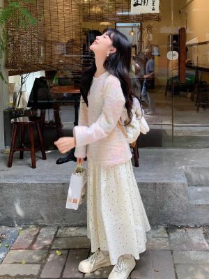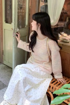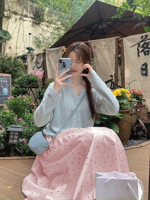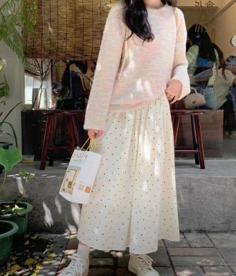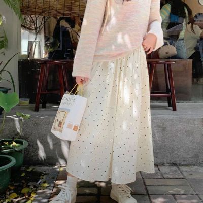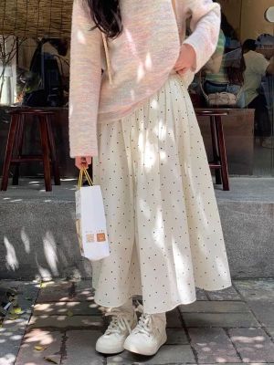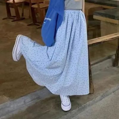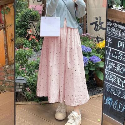 Spring and Summer New Half-Length A-Line Mini Skirt with Belt for Hiding Fat and Slimming Down Fairy Dress with Polka Dots