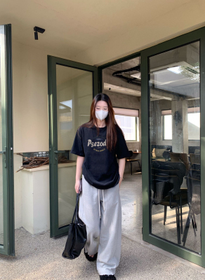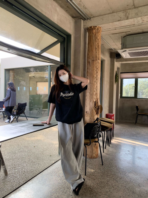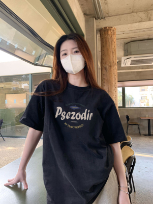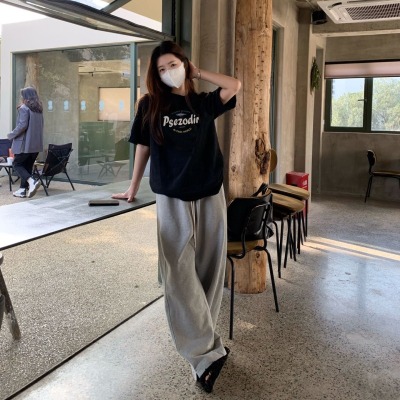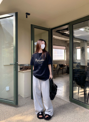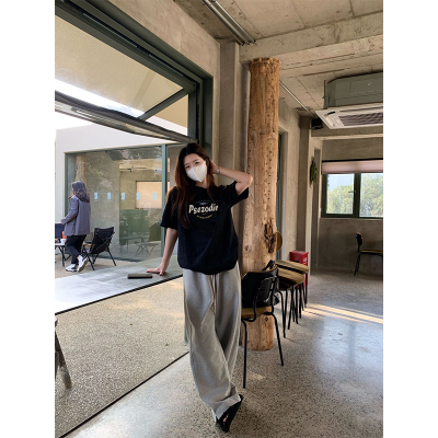 Black American-style retro letter-print short-sleeve T-shirt for women, summer, European and American trendy brand, loose-fit, slimming, straight-shoulder top, Instagram style.