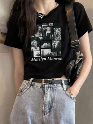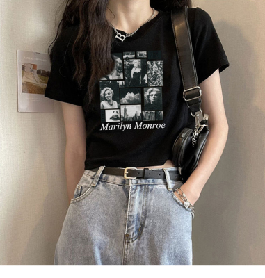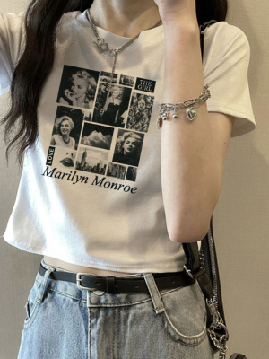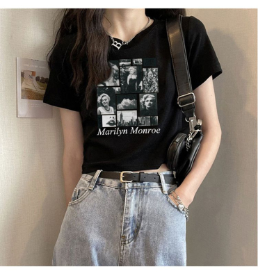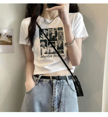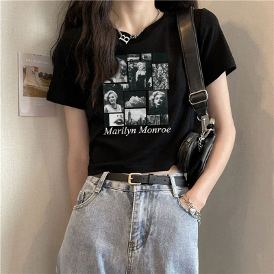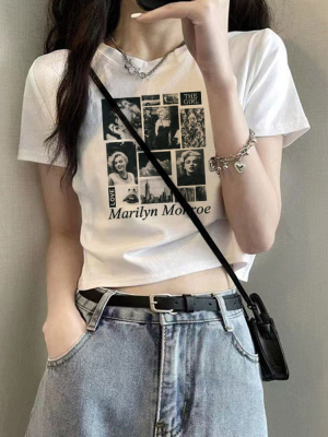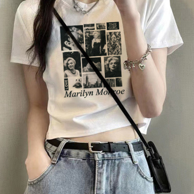 短款美式復古短袖T恤女2025夏季新款大碼上衣服