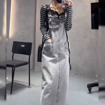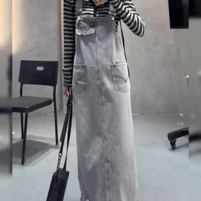 Women's Summer New Han Style Retro Plus Size Loose Hiding Fat Middle Length Skirted Dress with Slits