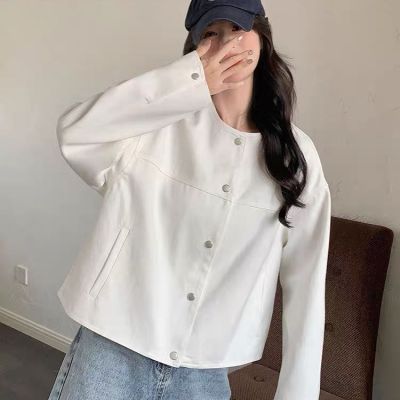 2025 Spring and Summer New White Hong Kong Style Casual Baseball Jacket Outerwear New Petite Trendy Jacket