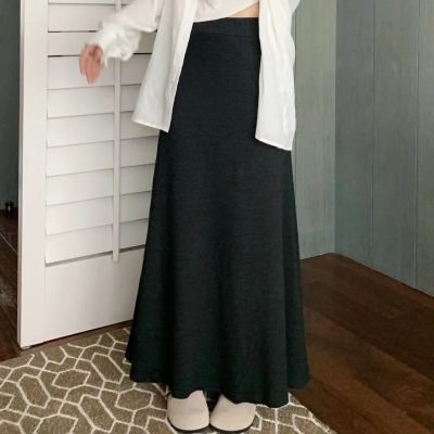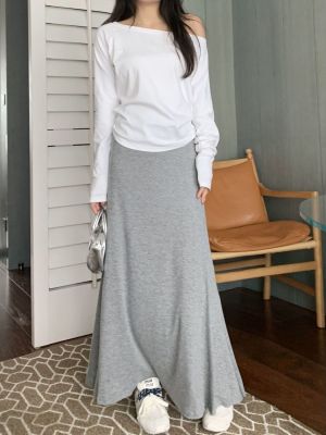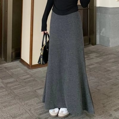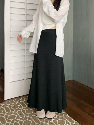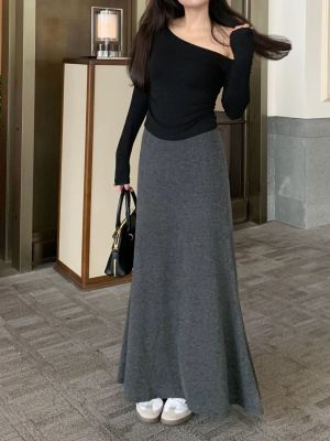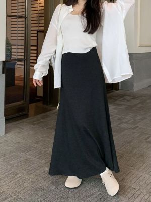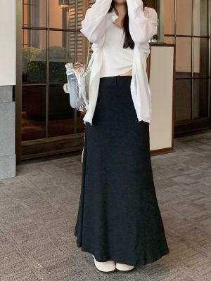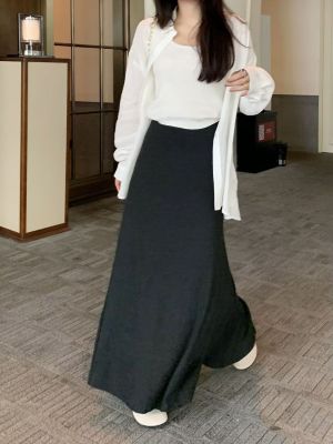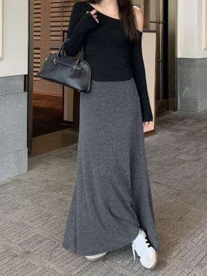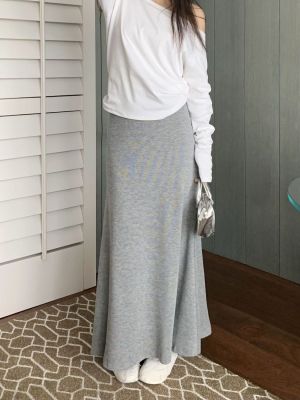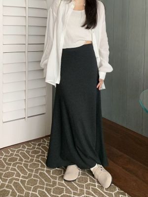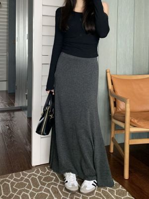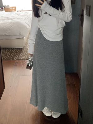 灰色針織包臀裙半身裙2025春秋新款復古顯瘦高腰墜感遮肉a字裙