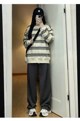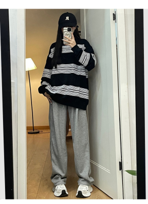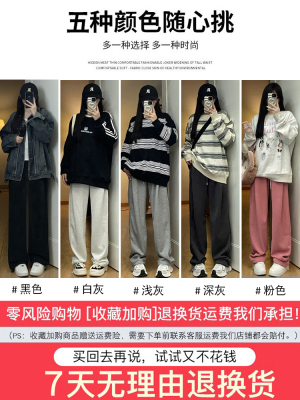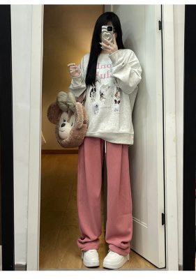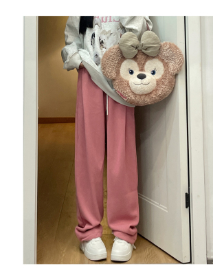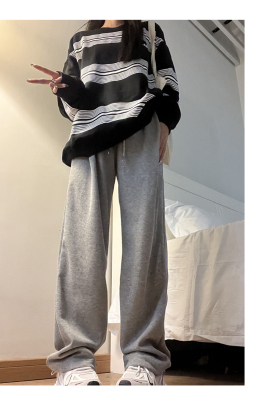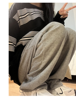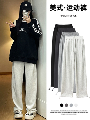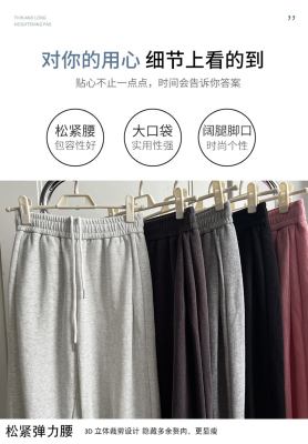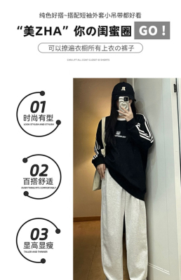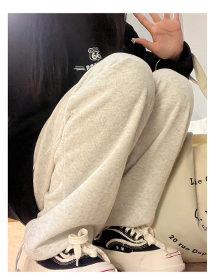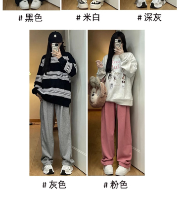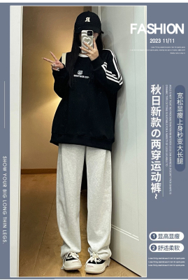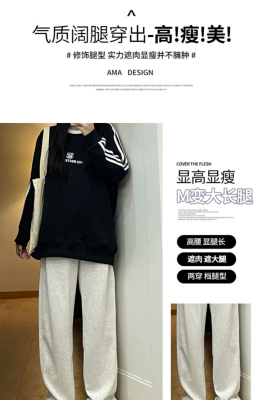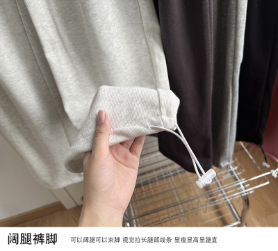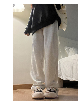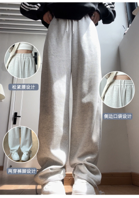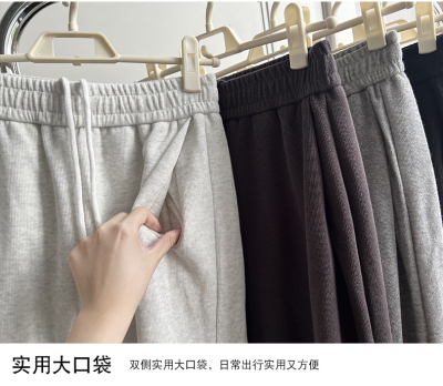 Huamian composite milk silk spring and autumn new high-waist straight loose tying sports and casual trousers