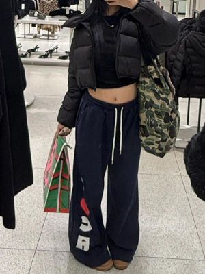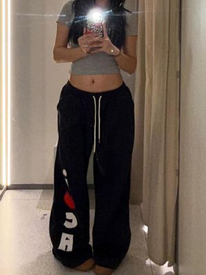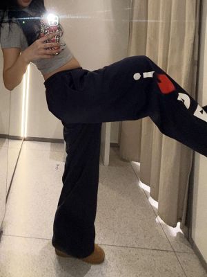Large size design and love letter printed drawstring casual pants for women 2025 spring loose slim versatile sports sweatpants