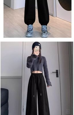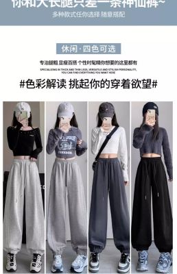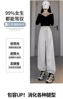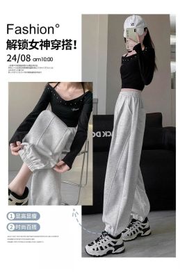 White and gray American sports pants for women in spring and autumn style high-waisted slim legs small casual banana pants