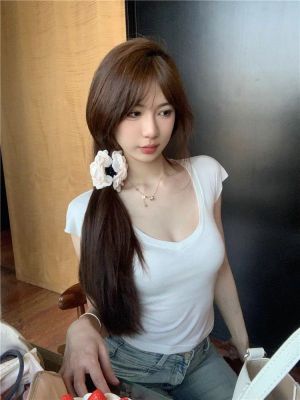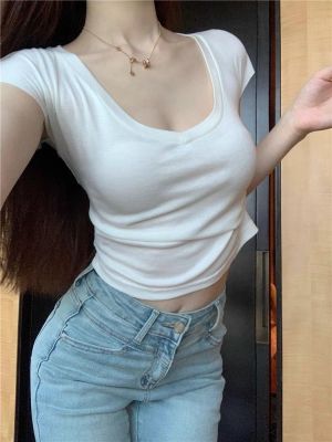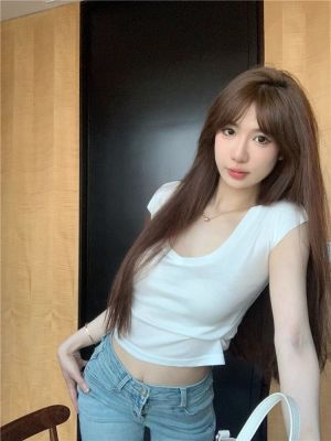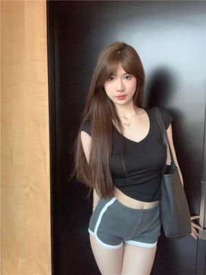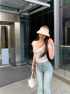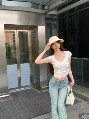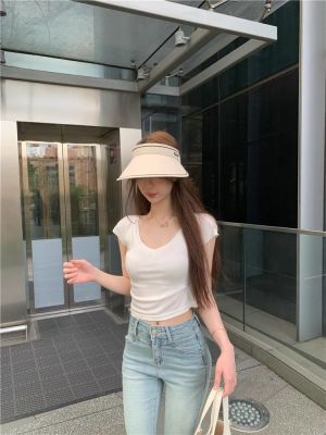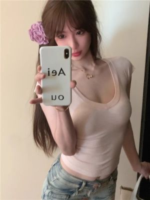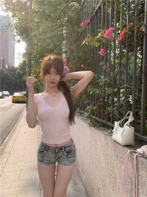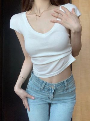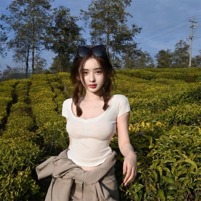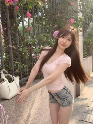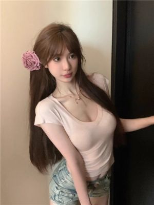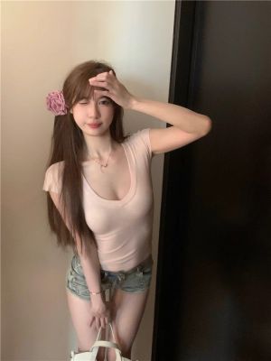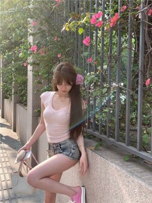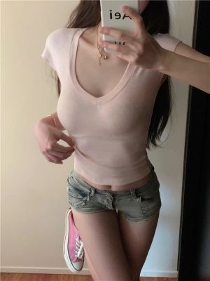 Cotton V-neck Short-sleeve T-shirt for Women - Summer 2025 New Arrival Pink Pure Desire Sheer Short Top