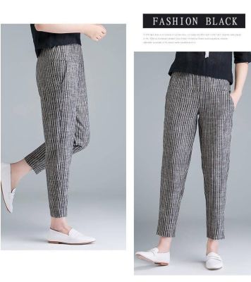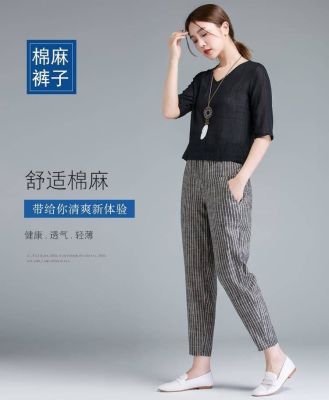 Summer Korean style thin cotton and linen pants for women loose carrot pants 2025 new high-waisted slimming nine-point harem pants