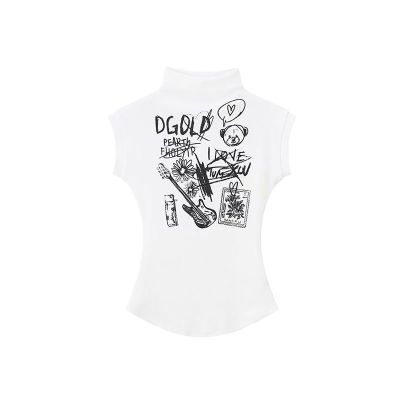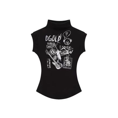 Rib hot girls slim short sleeveless top for women's summer new T-shirt