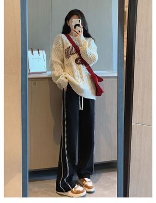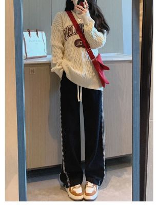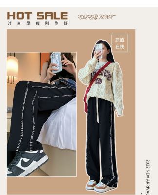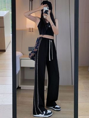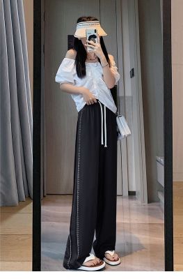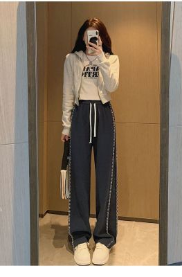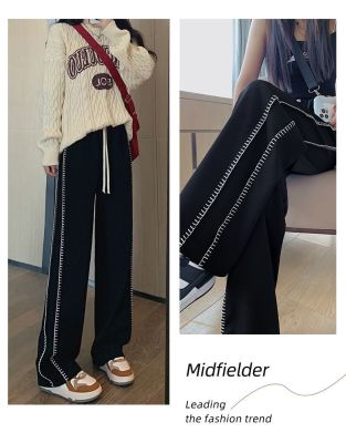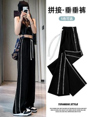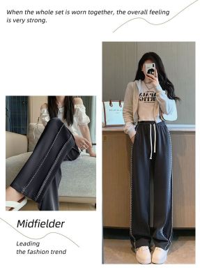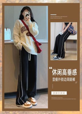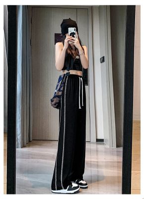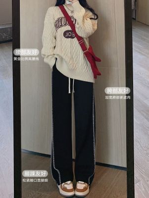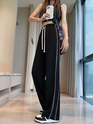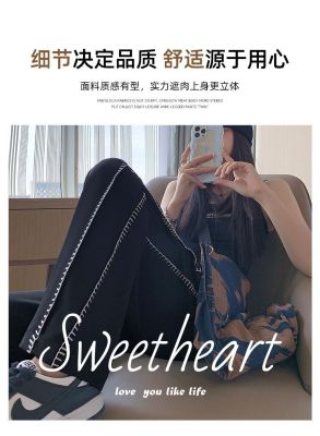 Black wide-leg pants for women's design niche spring, autumn and winter high waist loose straight floor trousers suit pants small