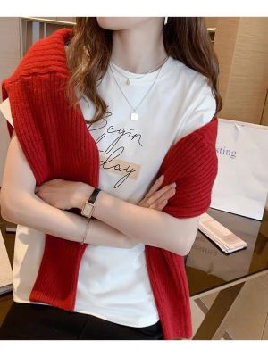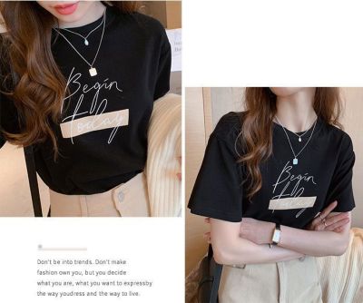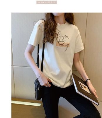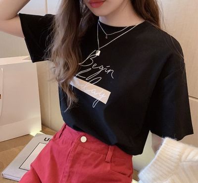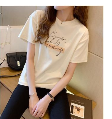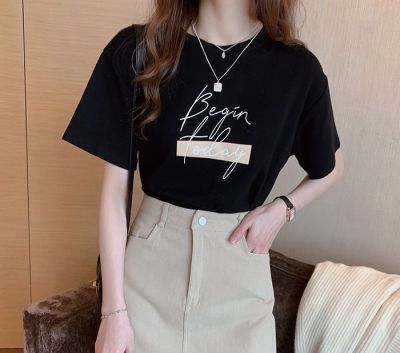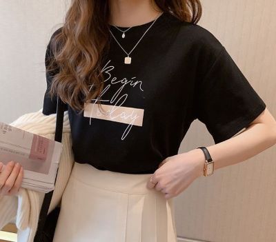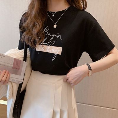 韓國外貿韓版新款夏季印花圓領短袖T恤女寬鬆半袖百搭上衣