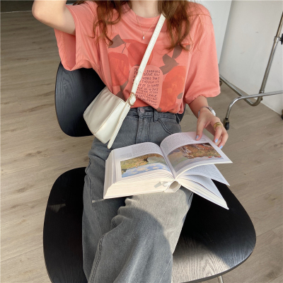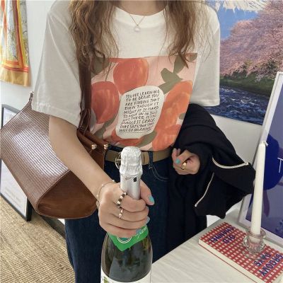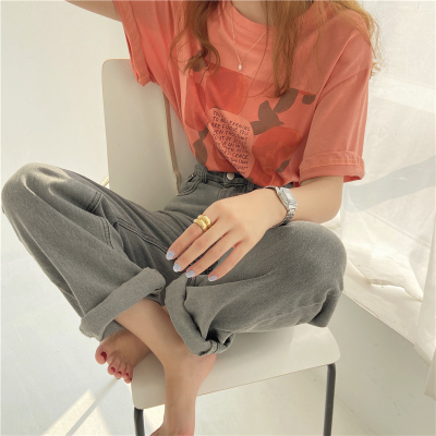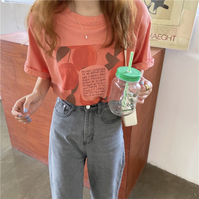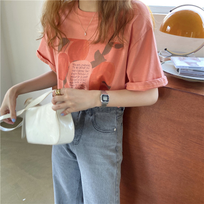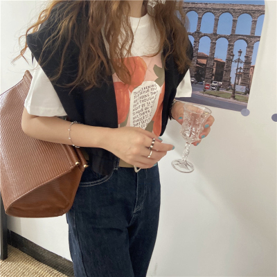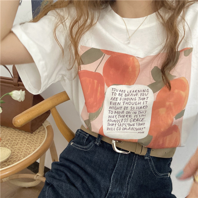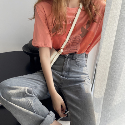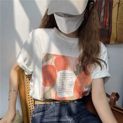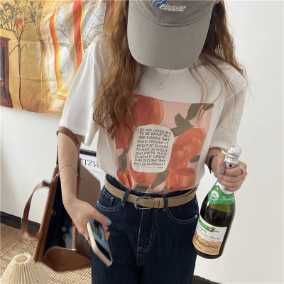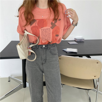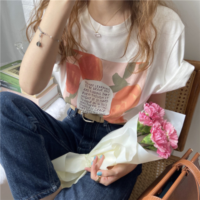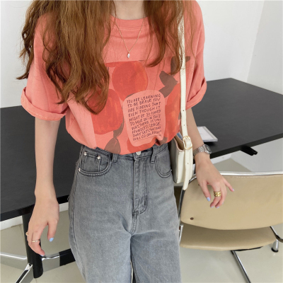 韓國外貿夏季新款韓版寬鬆顯瘦印花短袖T恤女裝設計感小眾上衣
