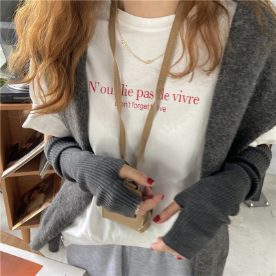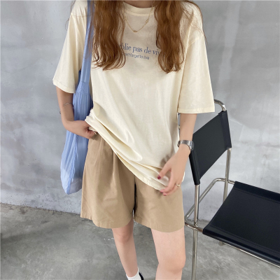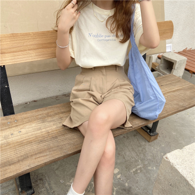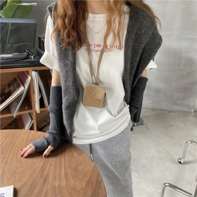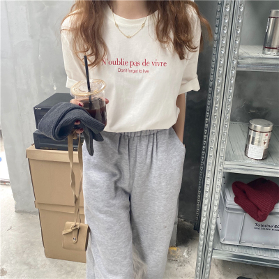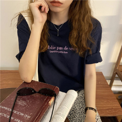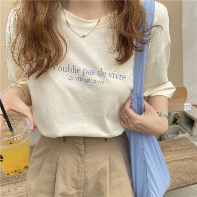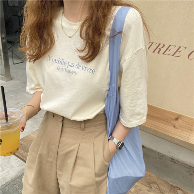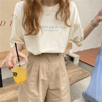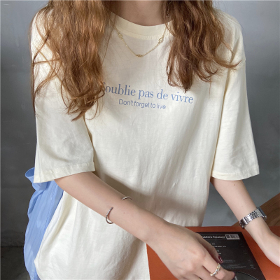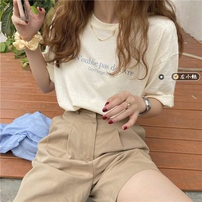 韓國外貿夏季新款韓版寬鬆顯瘦印花短袖T恤女裝設計感小眾上衣