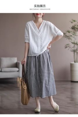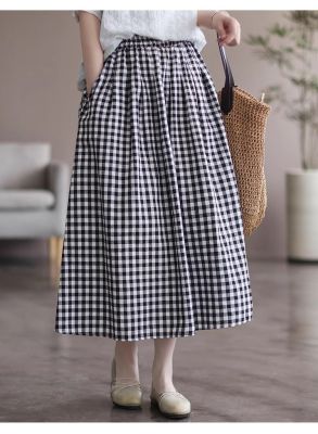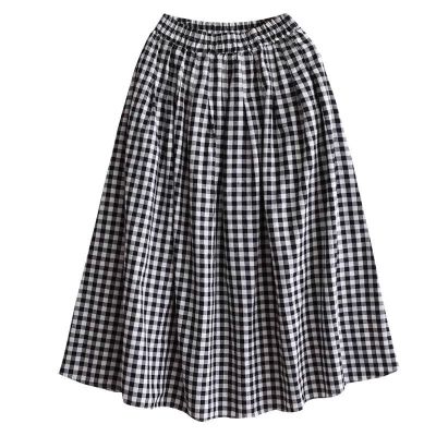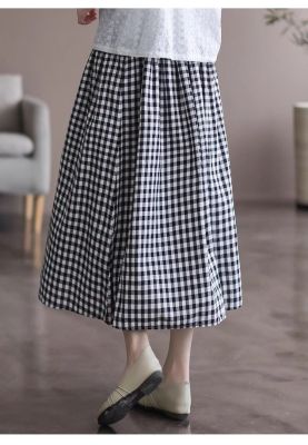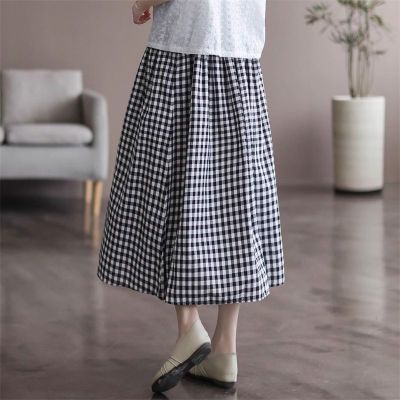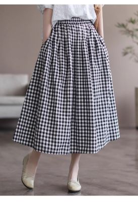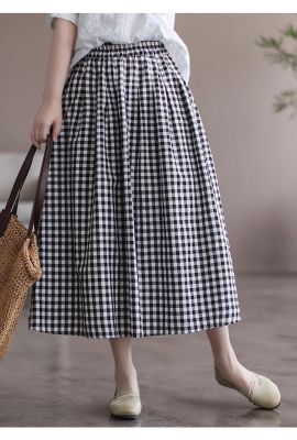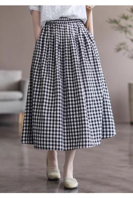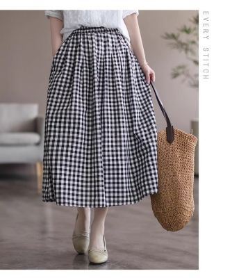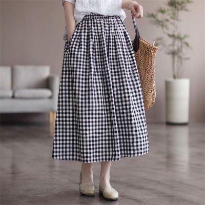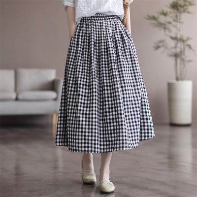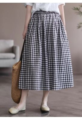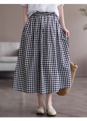 Simple Cotton Linen Striped Semi-Permanent Relaxed Waist Women's Mid-Long A-Line Skirt Summer New Arrival
