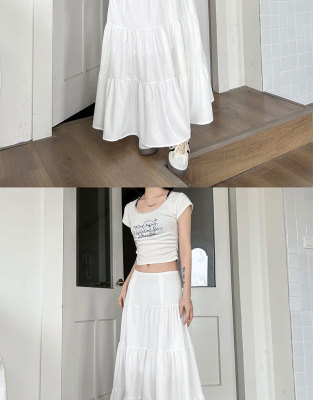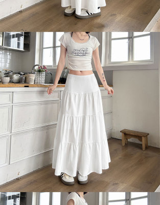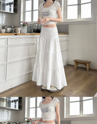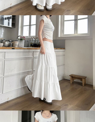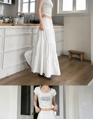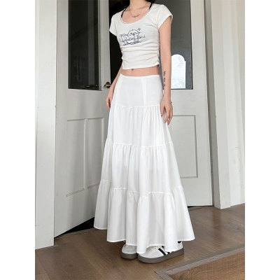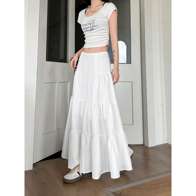Early spring gentle white skirt women's new summer high-waisted slim design niche large umbrella skirt