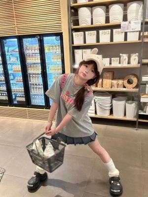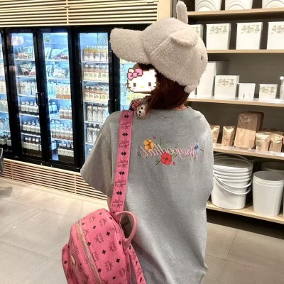 200g combed and tight spun in 2025, pure cotton back bag strip, spring and summer loose shoulder printed short-sleeved T-shirt