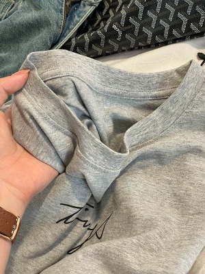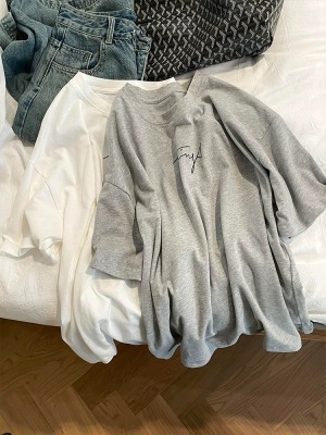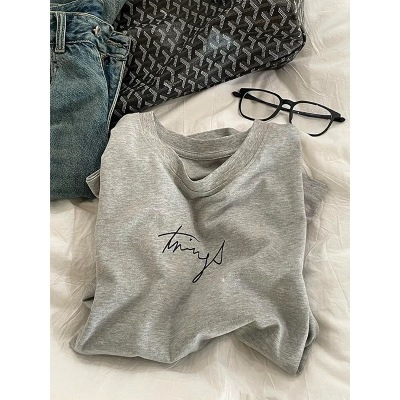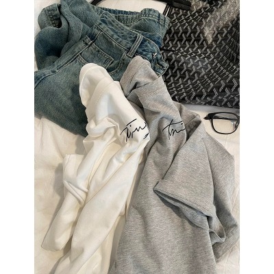 200g combed and tight-fitting sprinkler, pure cotton backpack, spring and summer loose shoulder printed short-sleeved T-shirt