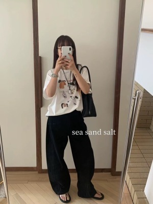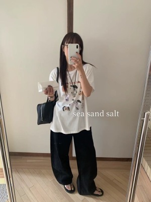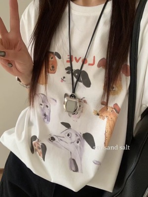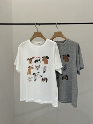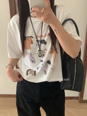 200g combed and tight-fitting sprinkler, pure cotton backpack, spring and summer loose shoulder printed short-sleeved T-shirt