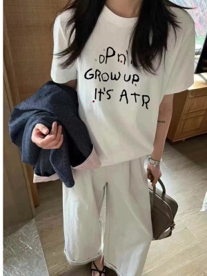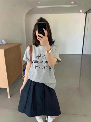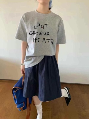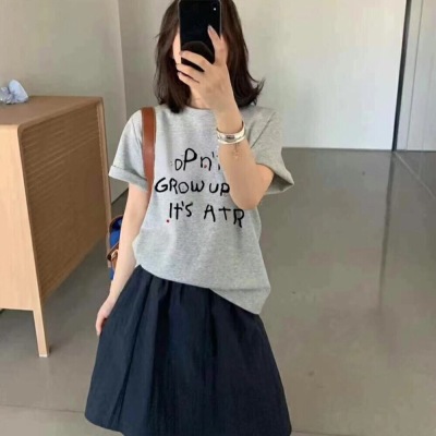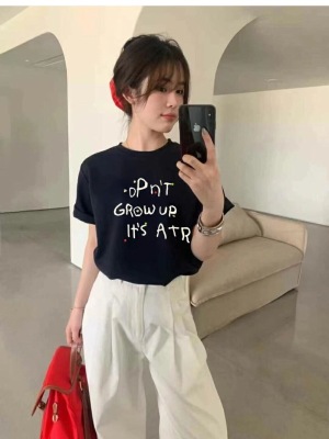 200g combed and tight-fitting sprinkler, pure cotton backpack, spring and summer loose shoulder printed short-sleeved T-shirt