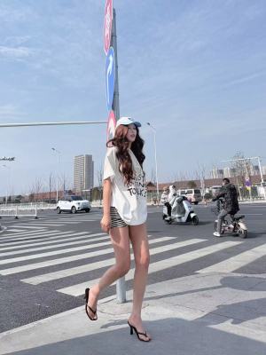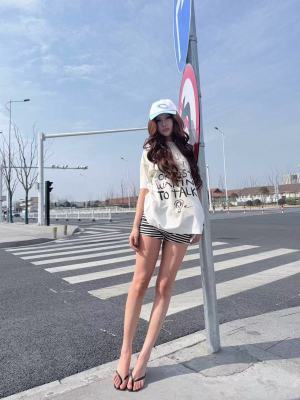 200g combed and tight-fitting sprinkler, pure cotton backpack, spring and summer loose shoulder printed short-sleeved T-shirt