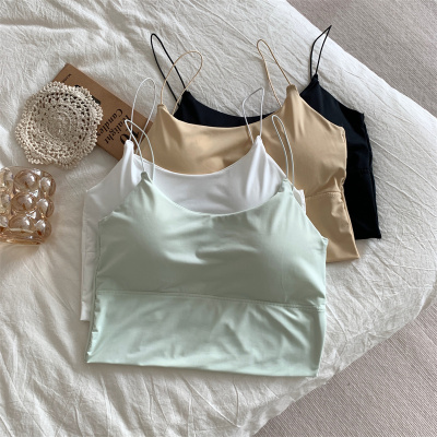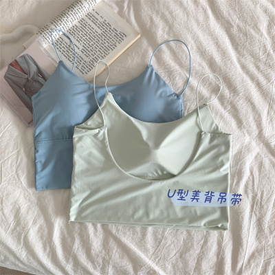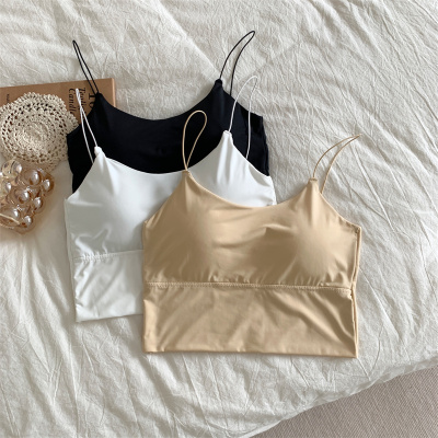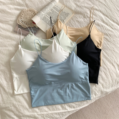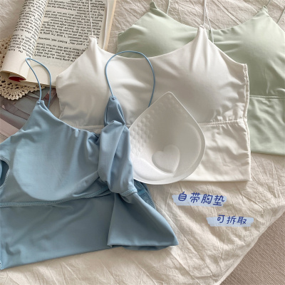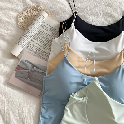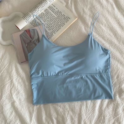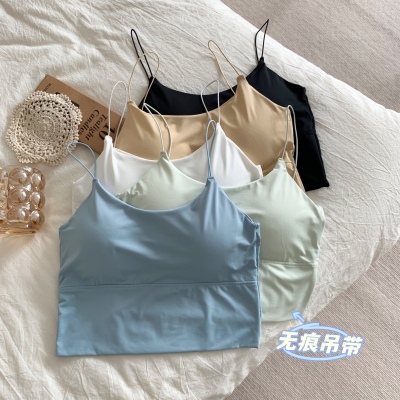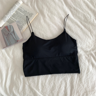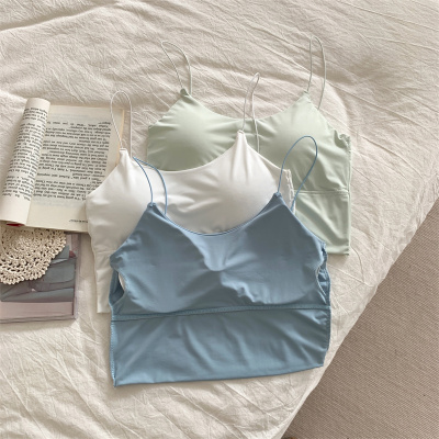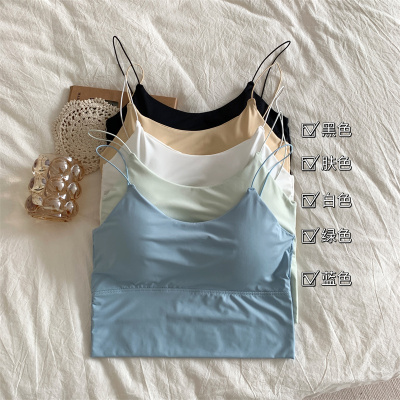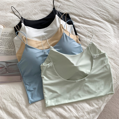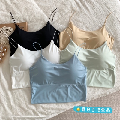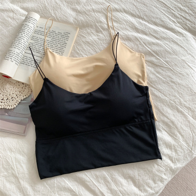 Real shot of ice silk V-neck suspender vest with chest pad