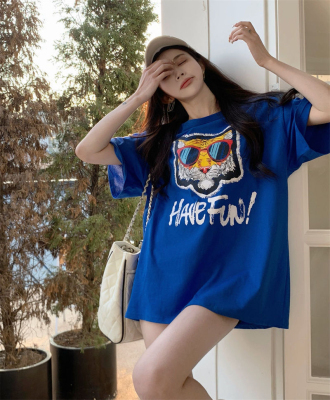 韓國外貿韓版新款夏季短袖T恤女韓版寬鬆慵懶原宿上衣chic港
