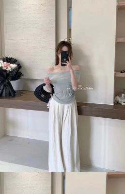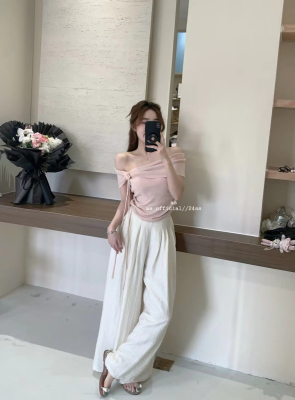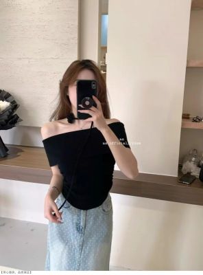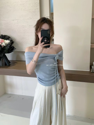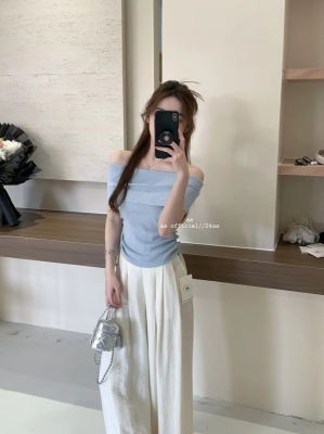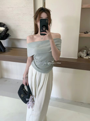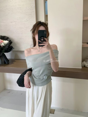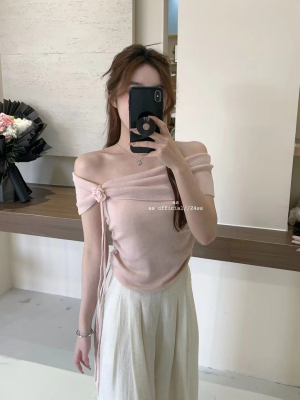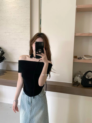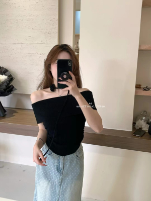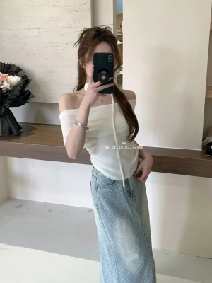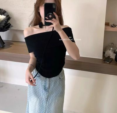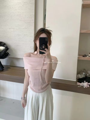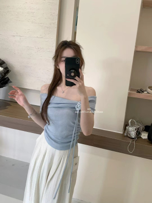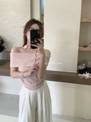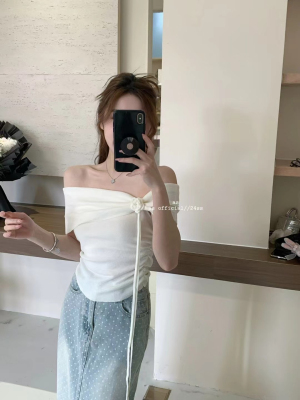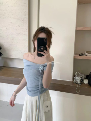 韓國東大門2025夏季新款韓版修身花朵掛脖設計一字肩顯瘦百搭上衣