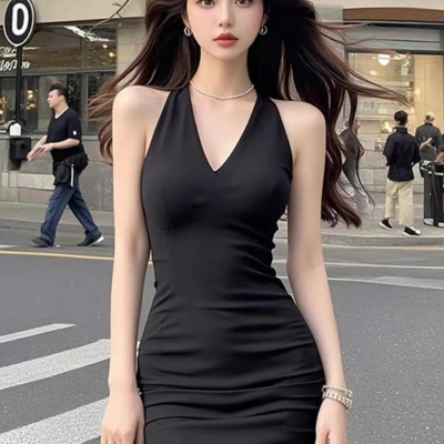 Korean chic pure desire sexy off-shoulder V-neck summer new lady godmother style slimming mermaid short skirt