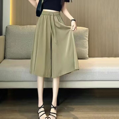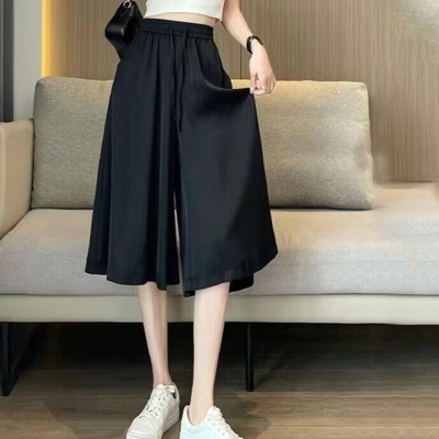 Ice silk wide-leg pants for women in summer 2025 new thin high waist drooping slimming loose casual knee-length skirt pants
