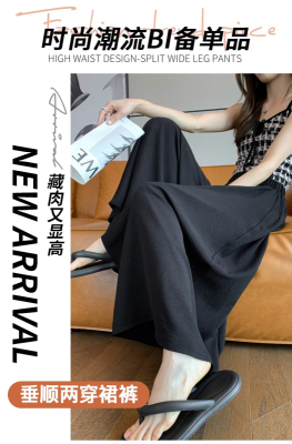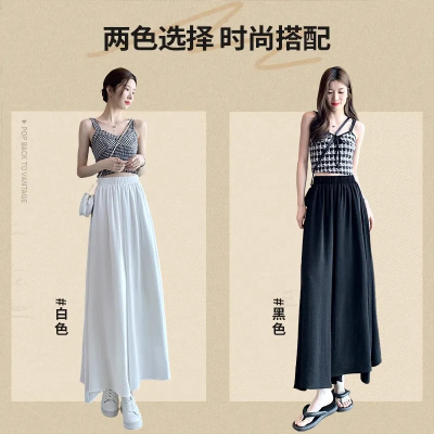 White trousers and skirts for women A-line pleated skirts for women with small drooping ice silk slimming texture and wide-leg pants