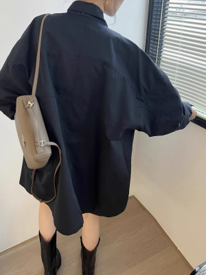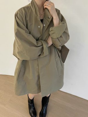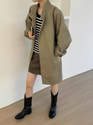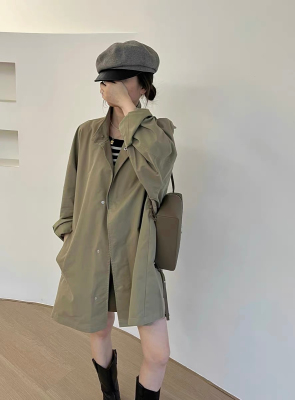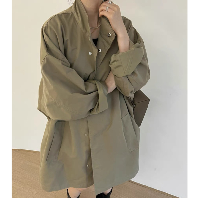 Korean chic autumn and winter retro thin style lazy style stand collar loose casual long sleeve mid-length windbreaker jacket for women
