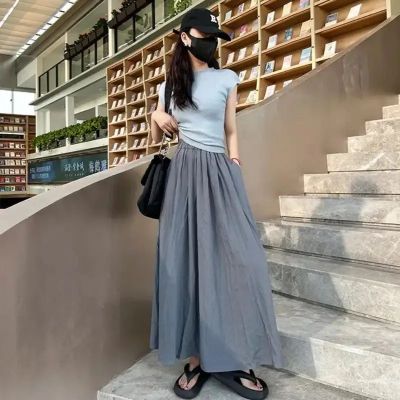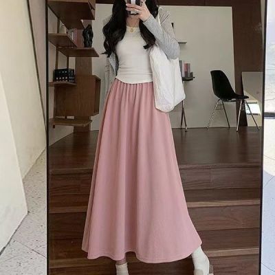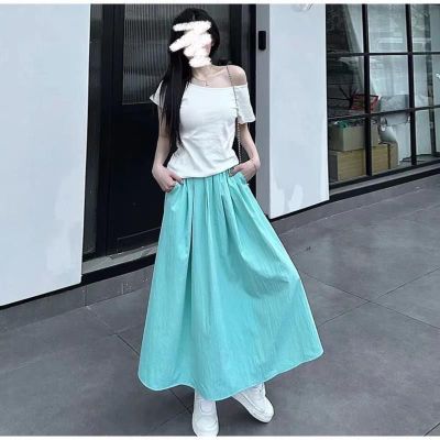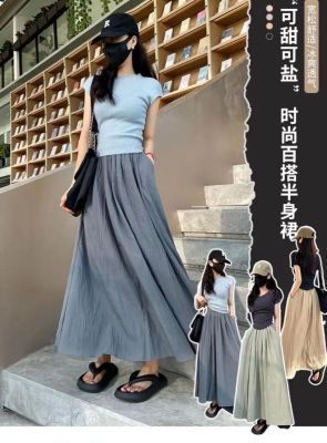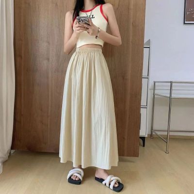 Yamamoto Group Women's Summer Apricot High-Waist Pleated New Long Skirt Loose Slim Casual Fresh A-line Skirt