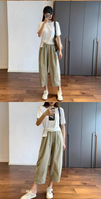Japanese casual pants for women in summer, straight and versatile loose nine-point harem pants, carrot pants, small trousers, pants