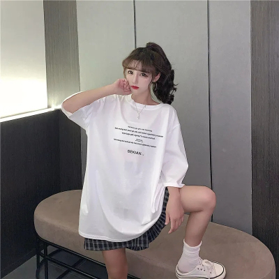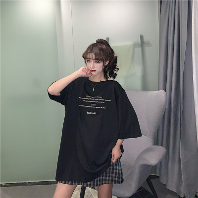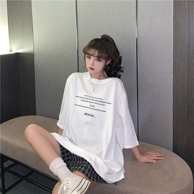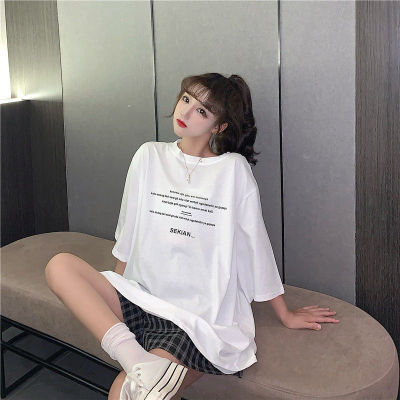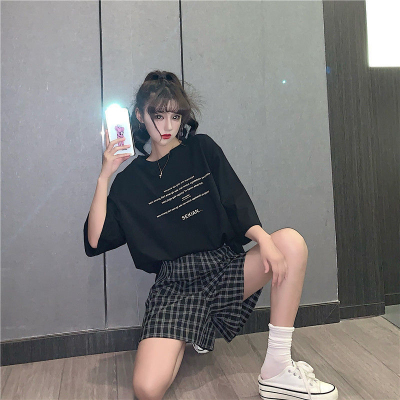 原版足碼外貿韓版新款夏季短袖T恤女韓版寬鬆慵懶原宿上衣chic港