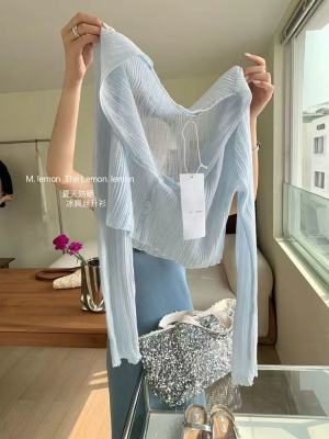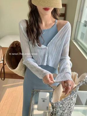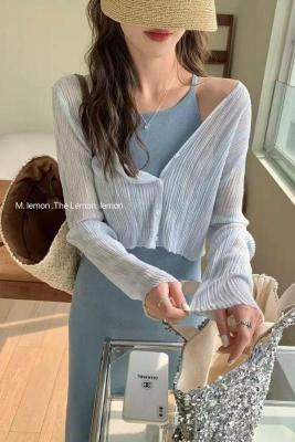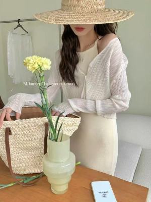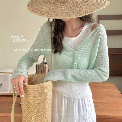 非實拍 白色冰絲針織防曬開衫薄款外套披肩夏季外搭小罩衫潮