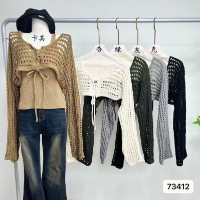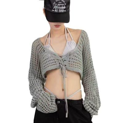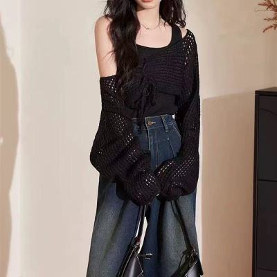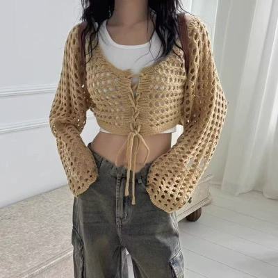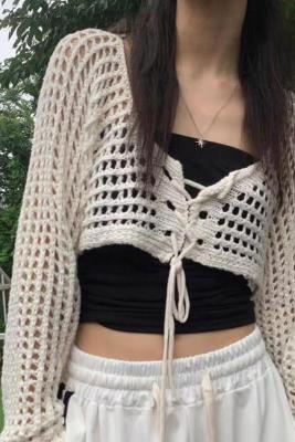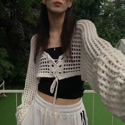 非實拍 鏤空系帶披肩防曬針織開衫女外搭罩衫上衣空調衫外套