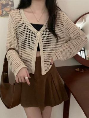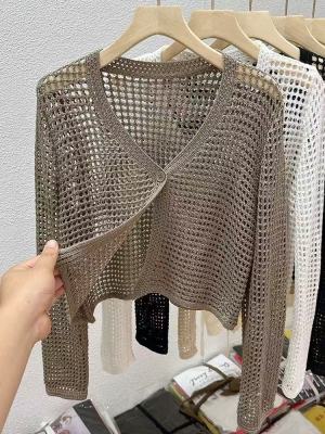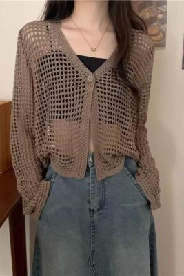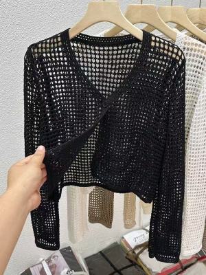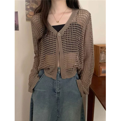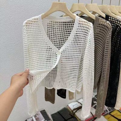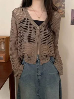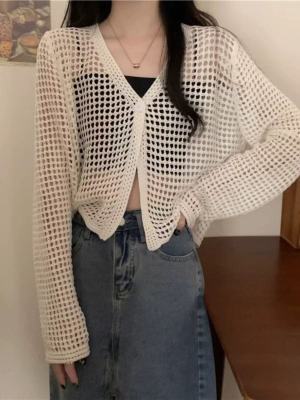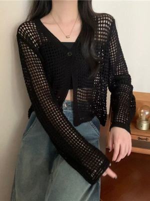 New Non-shoot Hollow Mesh Sheer Cardigan Knit Cardigan Short Sleeve Loose Air Conditioning Shirt Sun Protection Long Sleeve Top