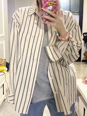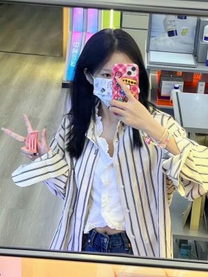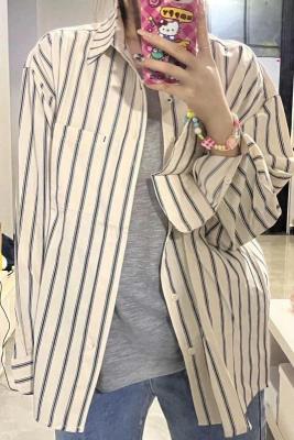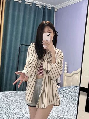 非實拍 法式條紋襯衫女春夏新款慵懶風小個子長袖開衫外套潮