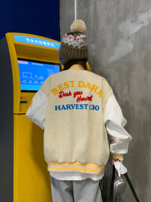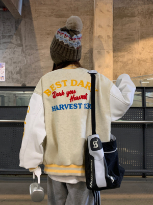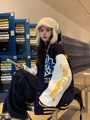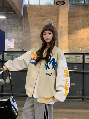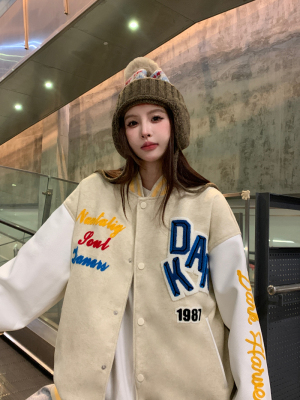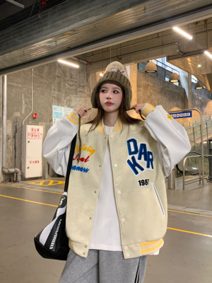 National trend flocking embroidered baseball uniform 2025 spring design niche couple jacket top coat