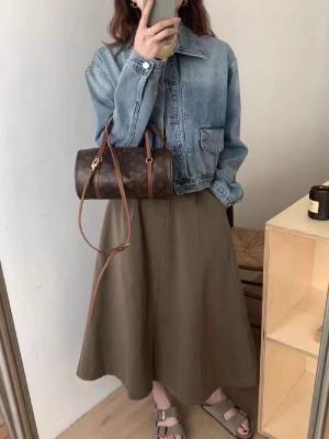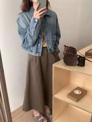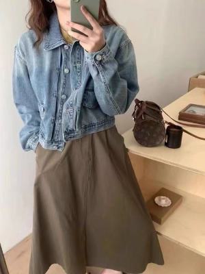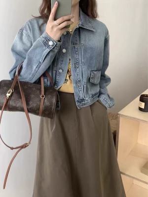 Early spring gradient blue short denim jacket for women with small retro design niche jacket cardigan spring and autumn