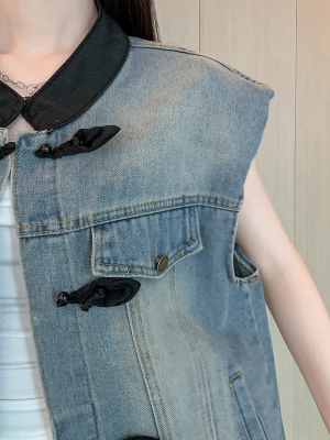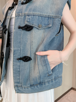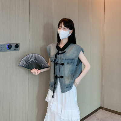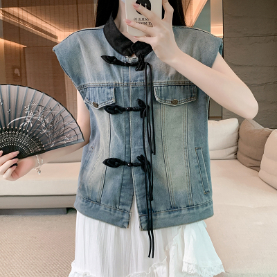 Real shot~ New Chinese denim vest jacket for women in summer new small outer short top