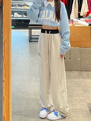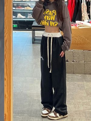 Real photos for women's autumn and winter casual loose slim American style trousers drooping high waist wide-leg pants