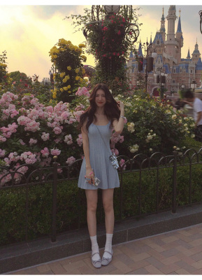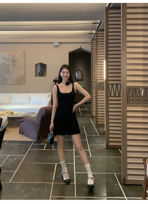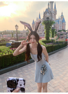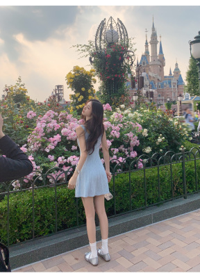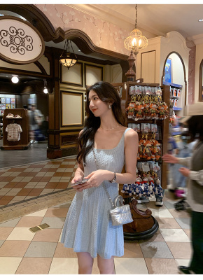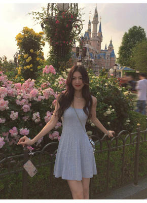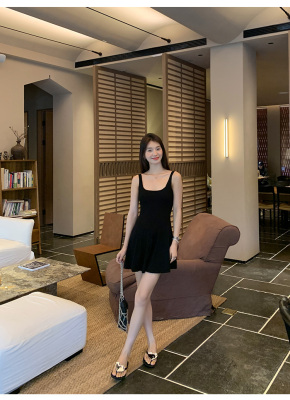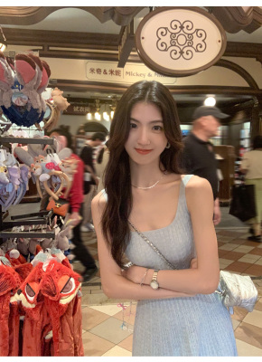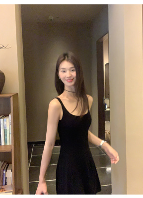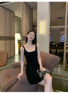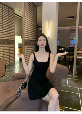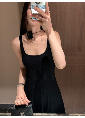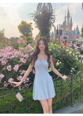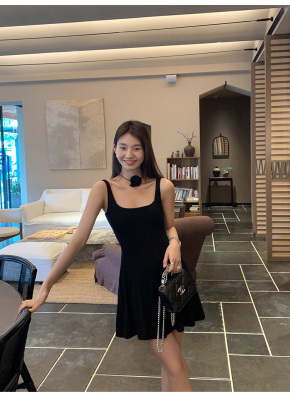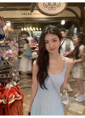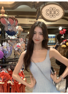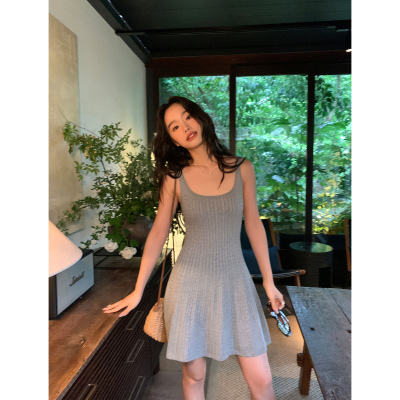 MULVAN U-neck slim suspender dress for women's twisted knitted short skirt summer new A-line waist-hugging skirt