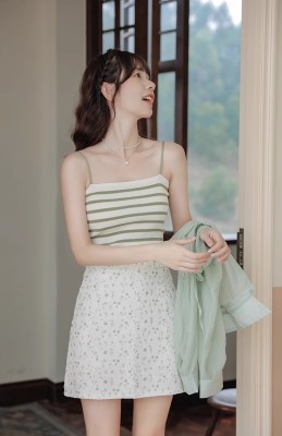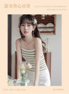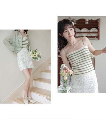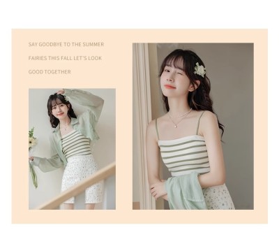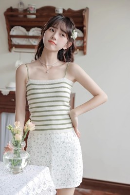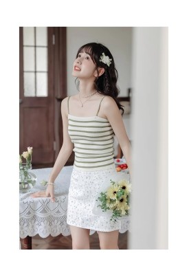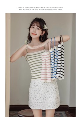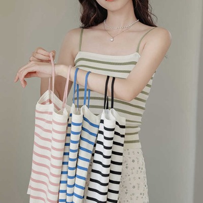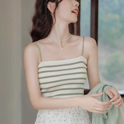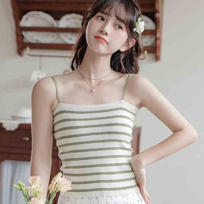 Pure and lustful striped knitted suspender vest for women 2025 spring new beautiful back sleeveless underwear spring temperament top