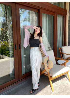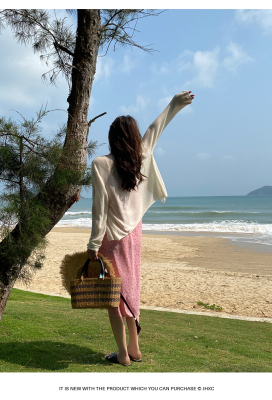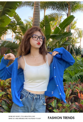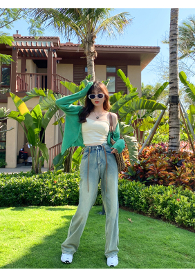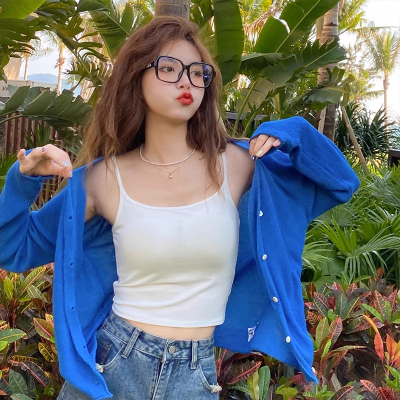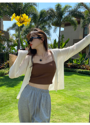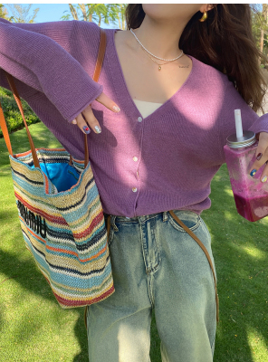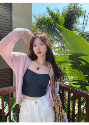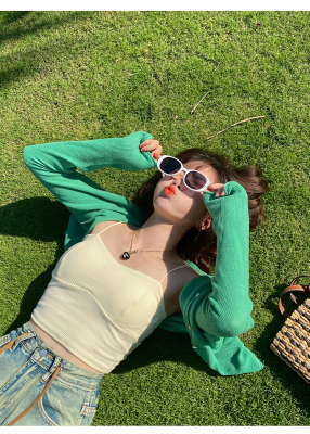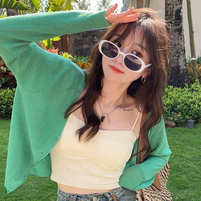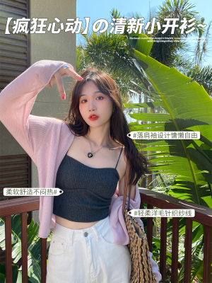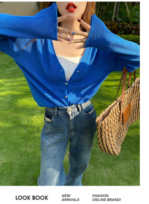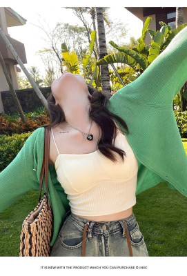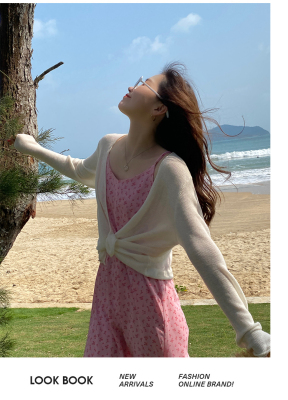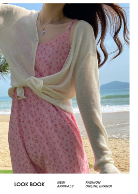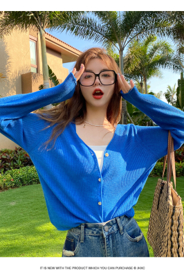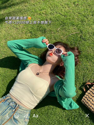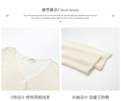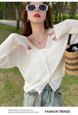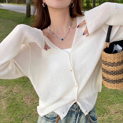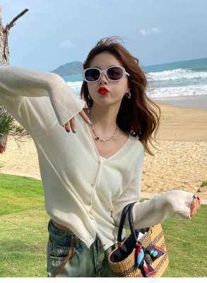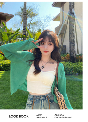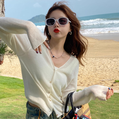 Green ice silk sunscreen knitted cardigan jacket for women in spring 2025 new style thin slim base top