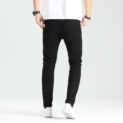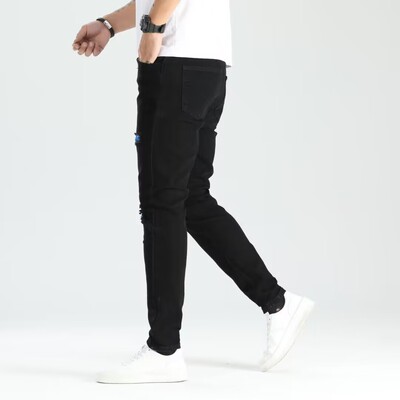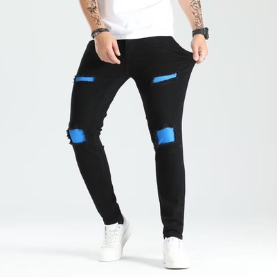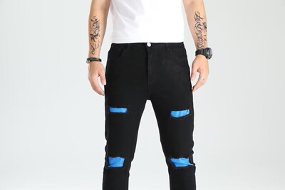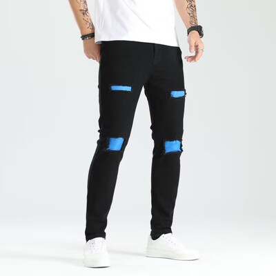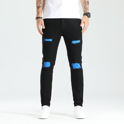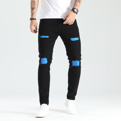 Cross-border new holey ankle men's pants European and American elastic patch trendy fashion jeans for men