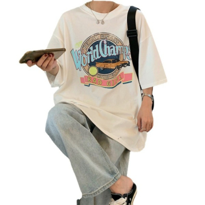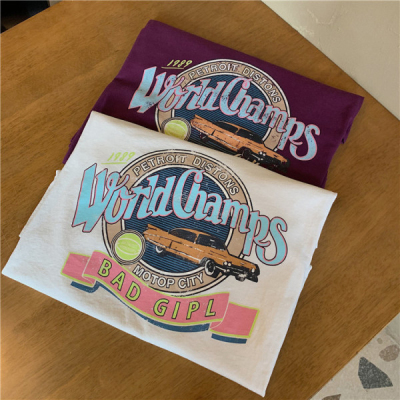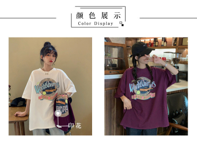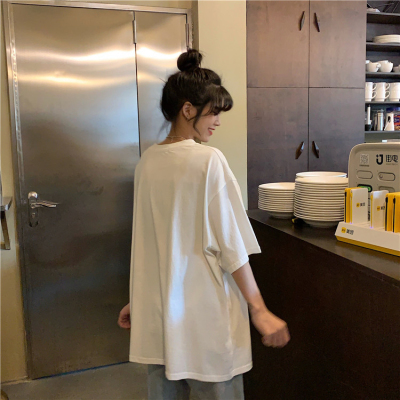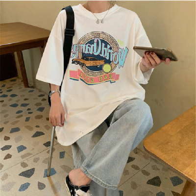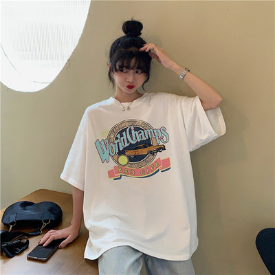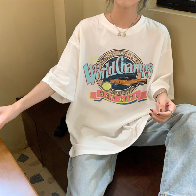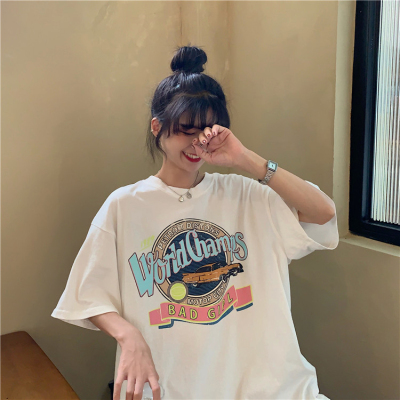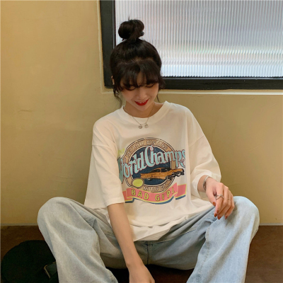 韓國外貿夏季韓版新款原宿風下衣失蹤印花寬鬆短袖T恤上衣女裝ins