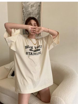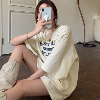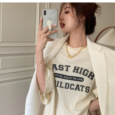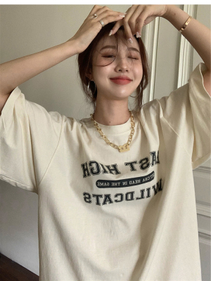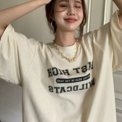 短袖t恤女春夏季寬鬆學生百搭半袖體恤網紅炸街小眾別致上衣ins潮