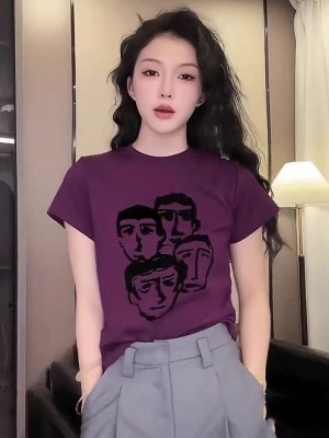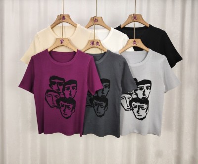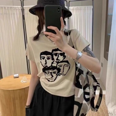 夏季新款洋氣獨特别致人像印花百搭短袖上衣女