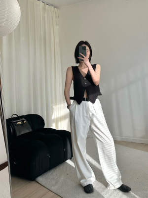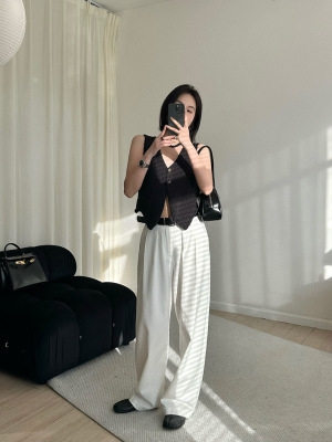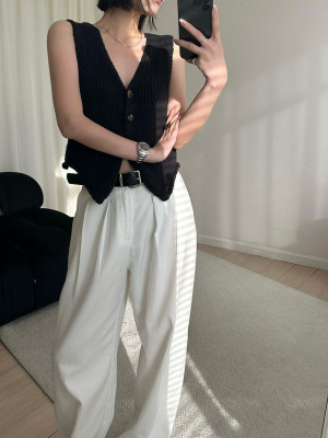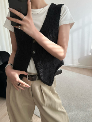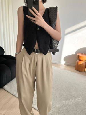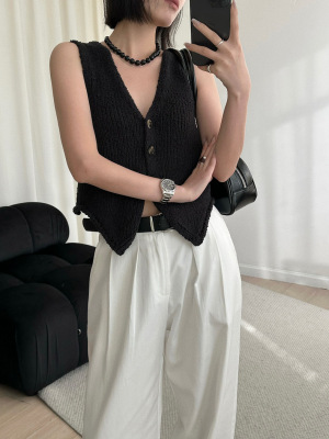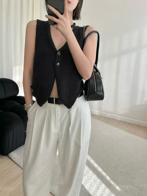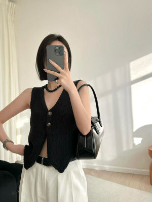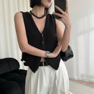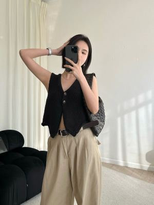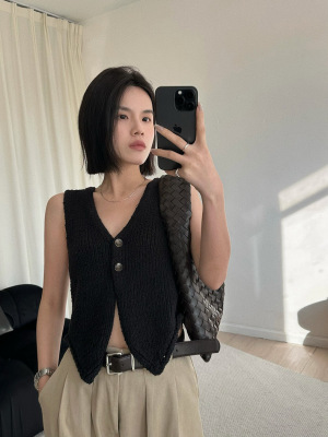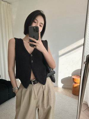 韓版新款小個子V領開衫百搭短款休閒寬鬆針織背心上衣